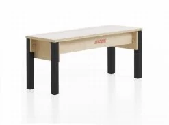 3-zitsbank Large met vaste zitting L 112 cm x B 35 cm x H 40 cm . De bank is uitgevoerd in berkenmultiplex en afgewerkt met een kind- en milieuvriendelijke transparante matte lak. De beukenhouten poten zijn afgewerkt met een mat zwarte lak.