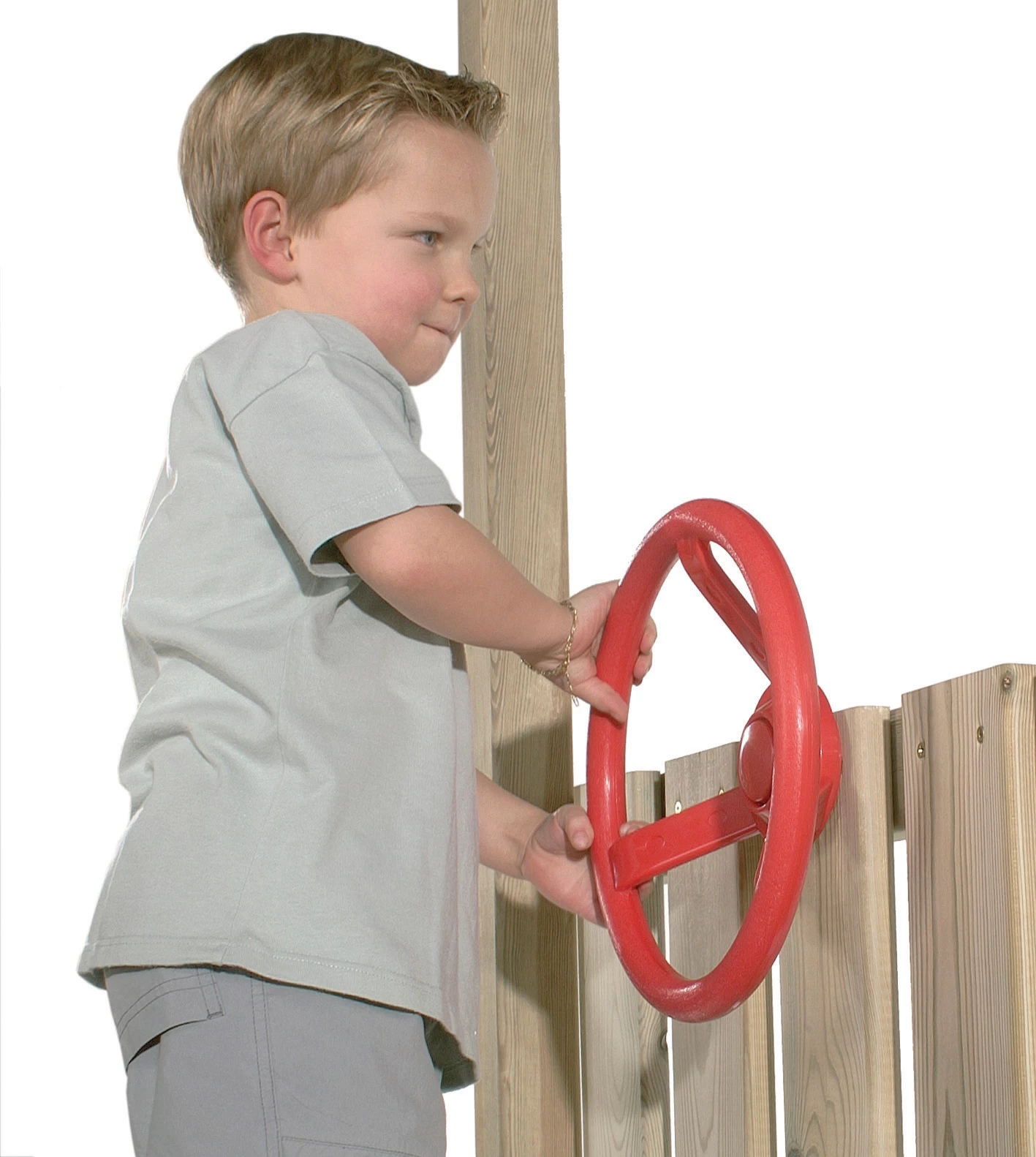 Volkunststof stuurwiel leverbaar in 4 kleuren; rood, blauw, geel en groen. Het stuur kan, gemonteerd op een speeltoestel, echt draaien. Diameter 30 cm.