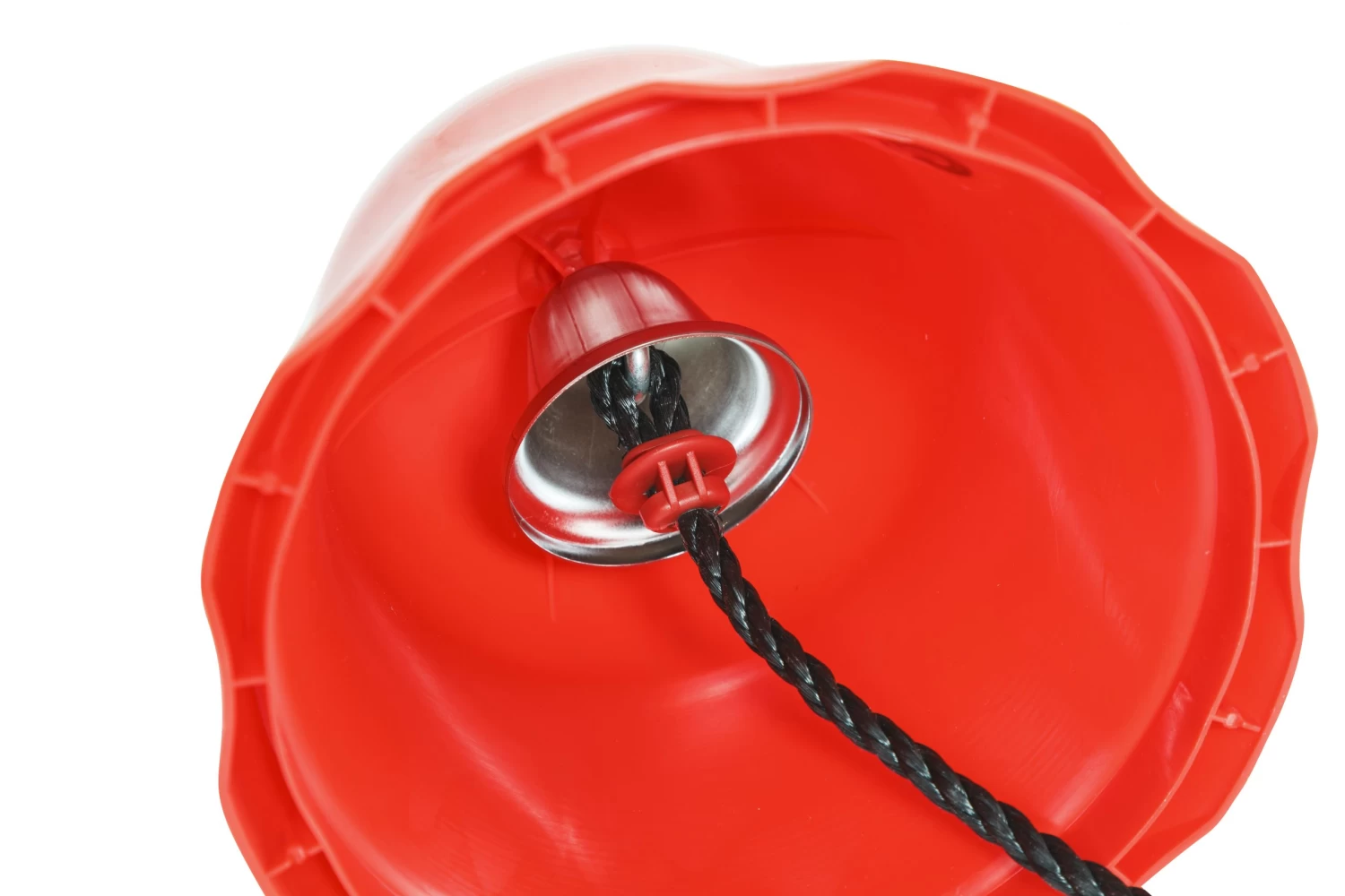 Uniek ontworpen bel uit spuitgegoten PP met mtalen binnenstuk. Maakt een echt belgeluid.