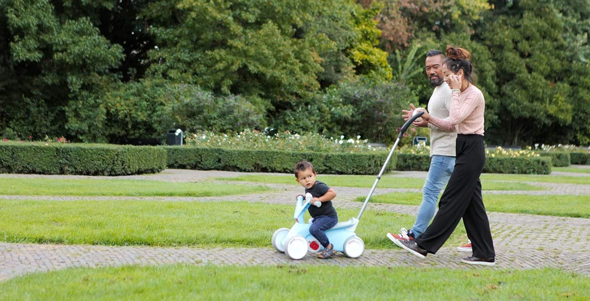 Deze duwstang is een praktische toevoeging voor de BERG Go2 skelter. Wanneer uw kindje niet meer wil trappen of steppen, klapt u de pedalen van de BERG Go2 eenvoudig in, kan uw kindje de voetjes op de voetensteun plaatsen en duwt u uw kindje.De duwstang is in hoogte verstelbaar zodat deze voor iedereen comfortabel instelbaar is.