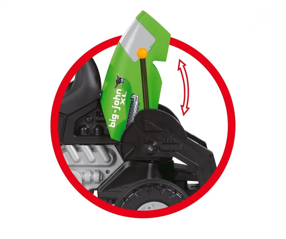 De BIG-John-XL Loader & trailer staat garant voor heel veel speelplezier.. Deze robusste tractor heeft heel goede rij-eigenschappen en veel speelmogelijkheden.. De motorkap kan geopend worden,, zodat de kleine chauffeur eenvoudig reparaties kan imiteren. De zitting is meervoudig verstelbaar.
