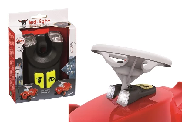 Hiermee ben je goed zichtbaar in het donker. Past op alle Bobby-Cars. Tevens claxongeluid voorzien.