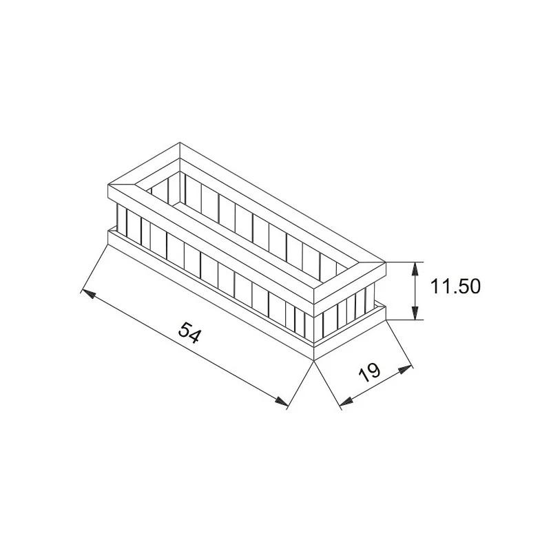 Afmetingen: b x d x h: 54 x 19 x 11,5 cm.