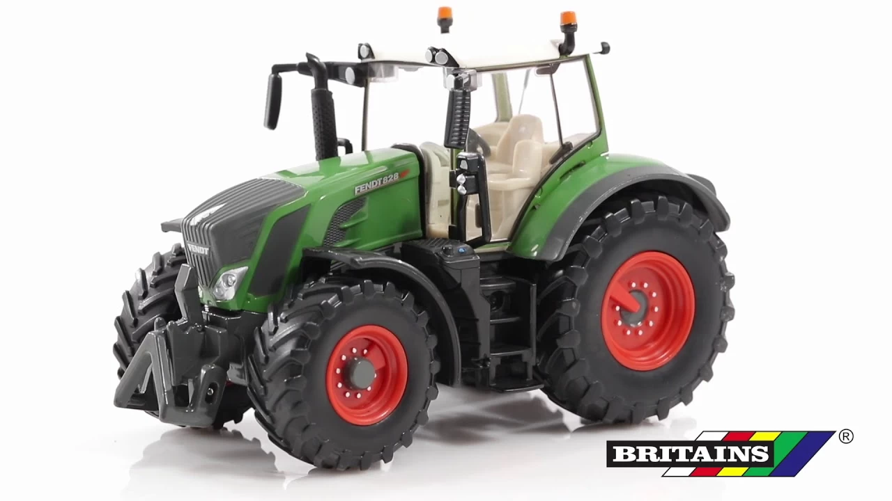 De nieuwe Fendt 828 Vario wordt door Fendt aangeduid als Duits meesterwerk. Nu komt deze ook op speelgoedformaat in de kinderkamer. Het BRITAINS model van kunststof en metaal geeft de geweldige proporties van de originele machine optimaal weer. De nieuwe vormgeving van de motorkap met de grimmige blik is net zo nauwkeurig uitgewerkt als de nieuwe achterband met nieuwe afmetingen. De bestuurbare vooras is voorzien van een pendelfunctie. De zware motorkap kan worden geopend en de cabine is afneembaar. Voor en achter zijn Britains standaardkoppelingen aanwezig.