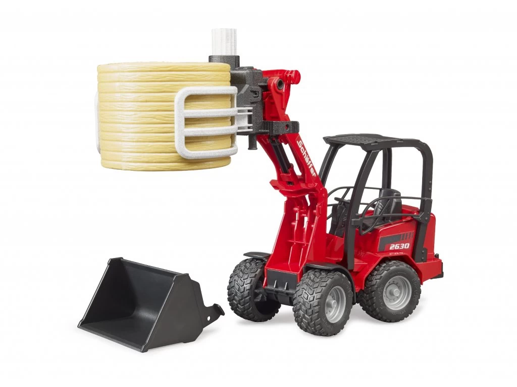 Deze balengrijper is geschikt voor alle Bruder tractorenย met voorladers en voor alle verreikers. Ook past deze op de CAT minishovel (02136)ย en de de Schafer 2034 minishovel (02191).