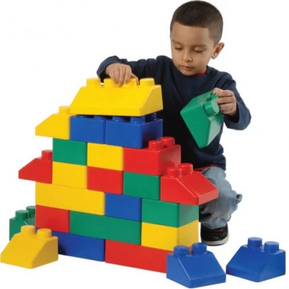 Snel en gemakkelijk bouwen kinderen de grootst mogelijke modellen met deze reuzeset. De set bestaat uit 100 elementen. De afmeting van de stenen bedragen: 22,5 x 11,2 x 8,6 cm. en 11,5 x 11,2 x 8,6 cm.