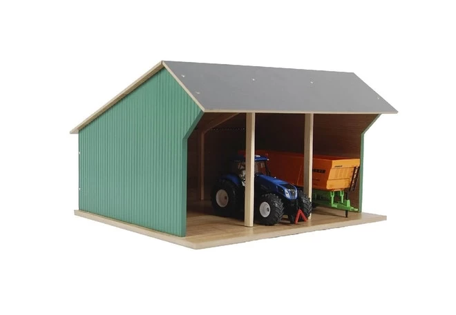 De voertuigen horen netjes opgeborgen te worden. Maak je boerderij compleet met deze tractor loods voor 3 voertuigen.
