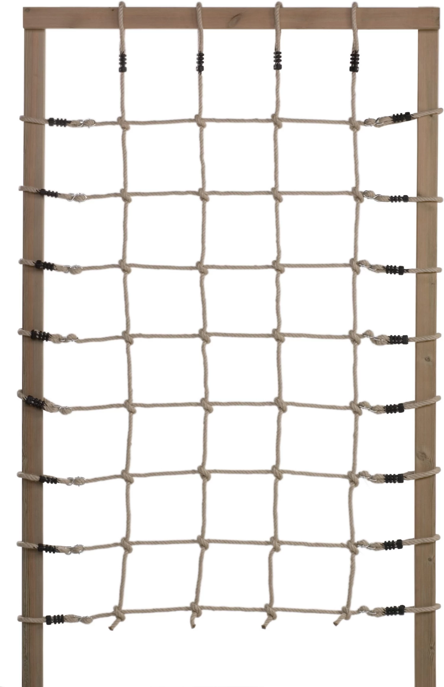 Klimnet van polyhemp touw met afmetingen 125 x 200 cm. Gemakkelijk te bevestigen en te spannen door gegalvaniseerde stelachten.