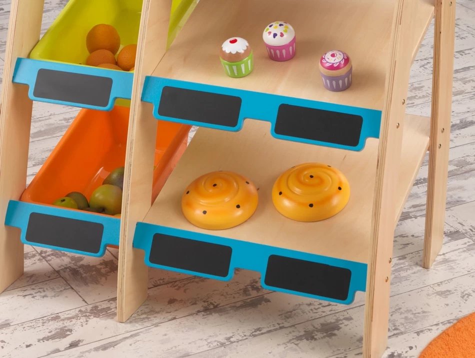 De Kidkraft Marktkraam is de ideale speelplek voor kinderen om winkeltje te spelen. Hij is uitgevoerd met een pinkassa + kassalade die open en dicht kan en biedt voldoende ruimte om alle koopwaar uit te stallen.