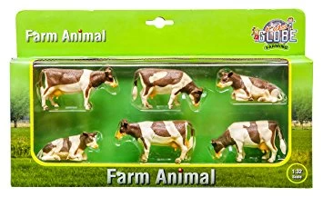 Deze set met boerderijdieren bestaat uit 2 staande koeien, 2 liggende koeien en 2 koeien die aan het grazen zijn. Deze roodbonte koeien zijn te combineren met alle boerderij series van Siku en Kidsglobe die zijn uitgevoerd op schaal 1:32. Door de realistische vormgeving en het sterke materiaal staat dit speelgoed van KidsGlobe garant voor jarenlang speelplezier.