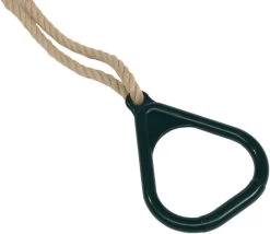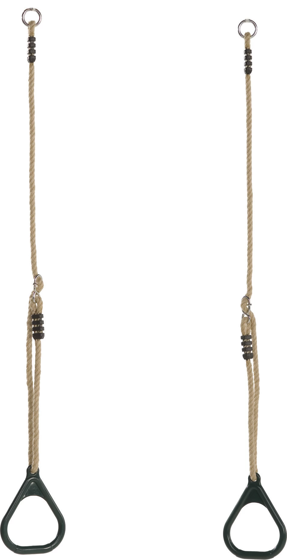 Deze driehoeksringen hebben een doorsnede van 14,5 cm. en groen van kleur. Compleet met 12mm. PH-touwenset. De volkunststof ringen worden geleverd incl. de 12 mm. PH-touwenset, welke voorzien zijn van gegalvaniseerde stelachten en ophangogen en de touwverbindignen zijn uitgevoerd met kunststof lassen.