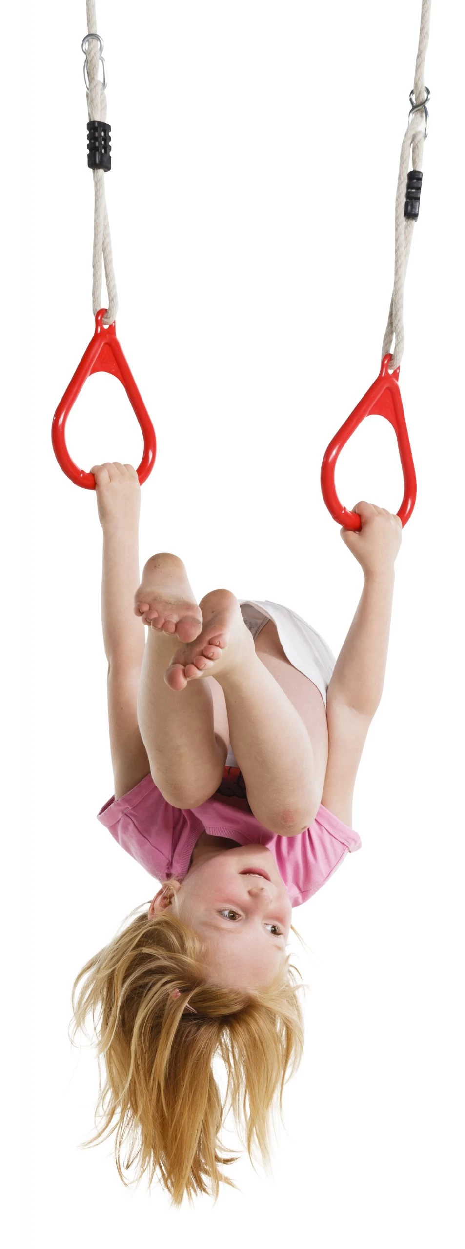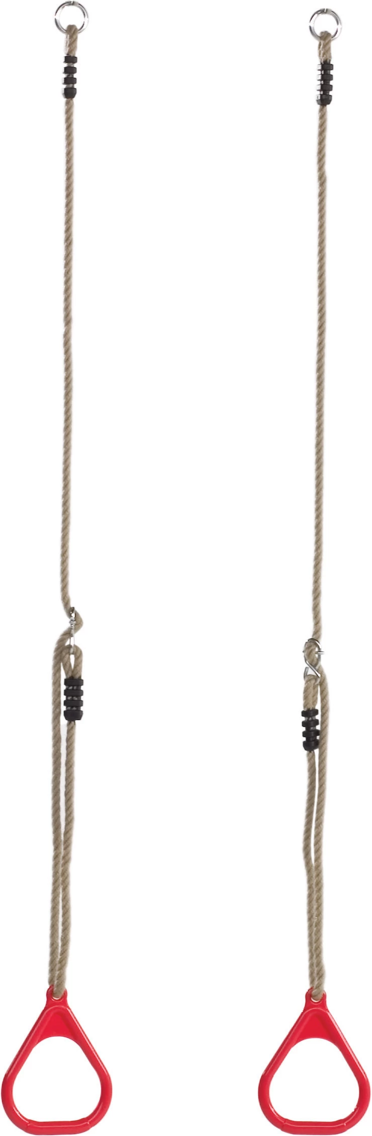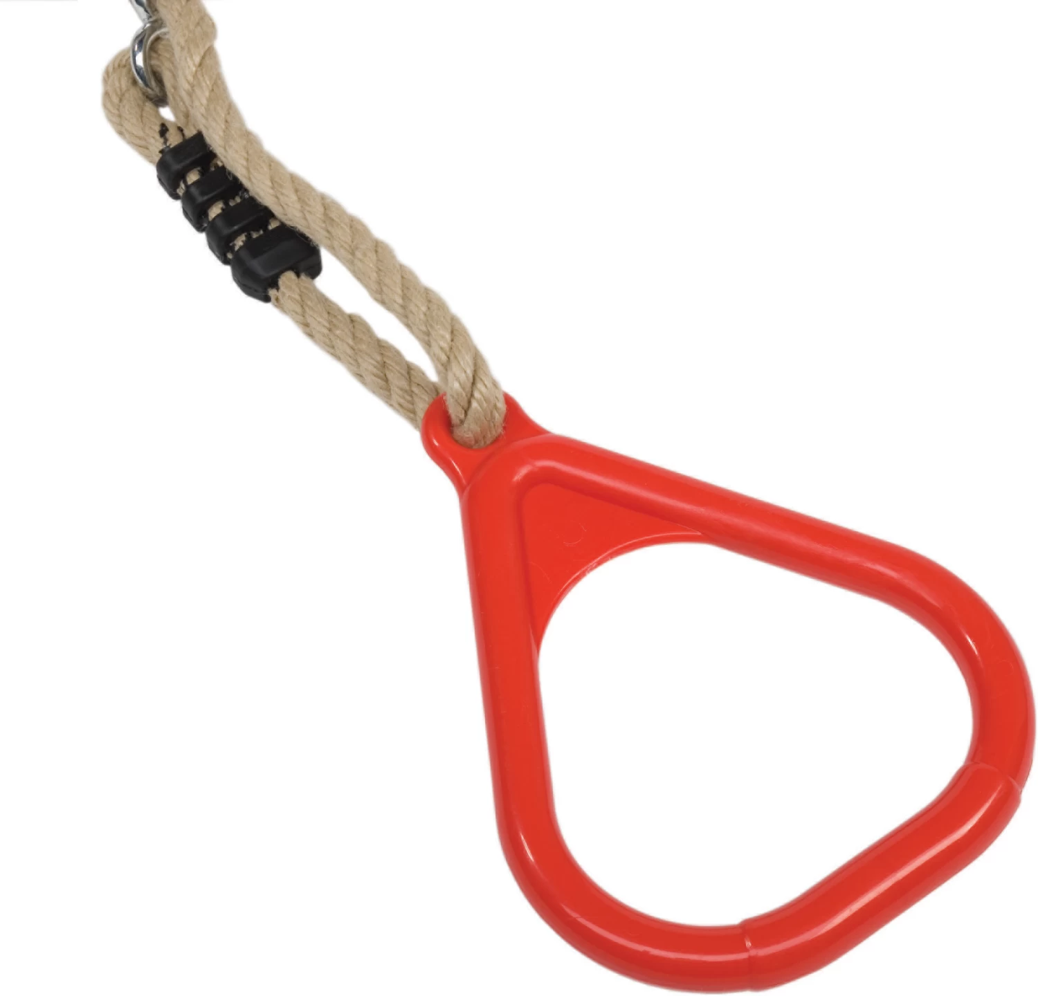 Deze driehoeksringen hebben een doorsnede van 14,5 cm. en rood van kleur. Compleet met 10mm. PP-touwenset. De volkunststof ringen worden geleverd incl. de 10 mm. PP-touwenset, welke voorzien zijn van gegalvaniseerde stelachten en ophangogen en de touwverbindingen zijn uitgevoerd met kunststof lassen.