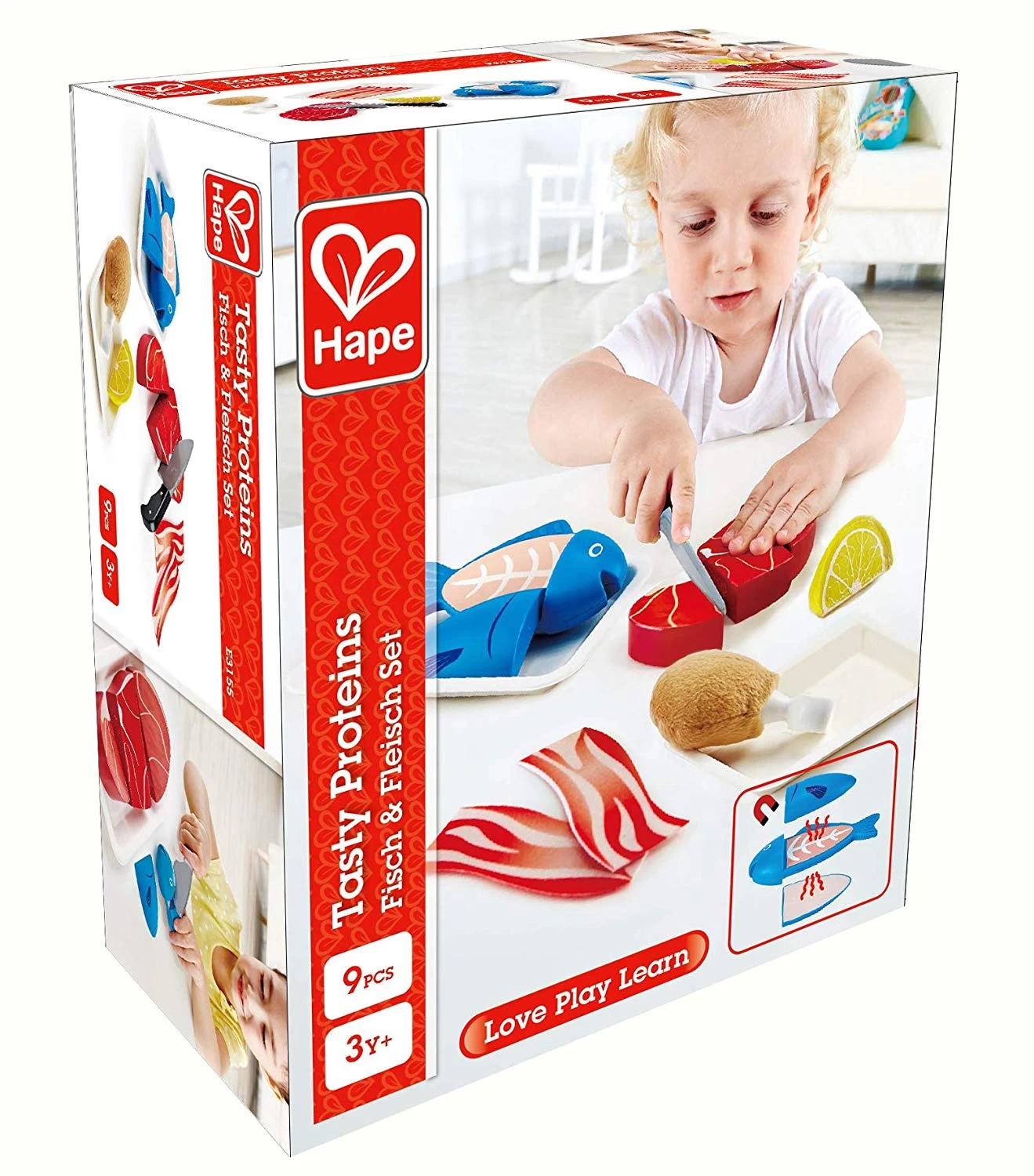 Eiwitten zijn belangrijk om spieren op te bouwen. Oefen met deze realistische keukenspeelset hoe je eten zoals rundvlees, kip, vis en spek klaarmaakt. Met speelmes en schijfje citroen.