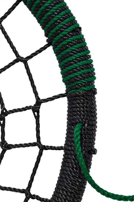 Deze schommel type arendnest heeft een touw structuur als spinnenweb.