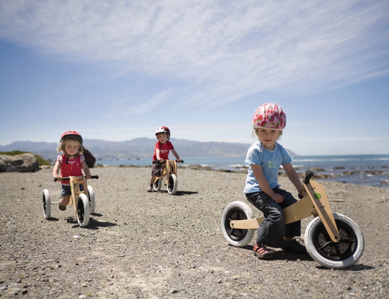 Voor kinderen vanaf 1 jaar wordt de Wishbonebike als driewieler gebruikt. Daarna, als kinderen 2 Γ 3 jaar zijn, kan de Wishbonebike aangepast worden tot een stoere loopfiets door heel simpel de achteras uit het frame te halen en de 2 achterwielen te vervangen voor 1 wiel. Als ze ongeveer 4 zijn, draai je het frame om en is de loopfiets hoger en nog steeds geschikt om ook als 5 jarige mee te spelen.